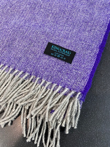Very Soft Top Quality 100% Wool, Herringbone Weave Throw – Grey Warp with a Purple Weft